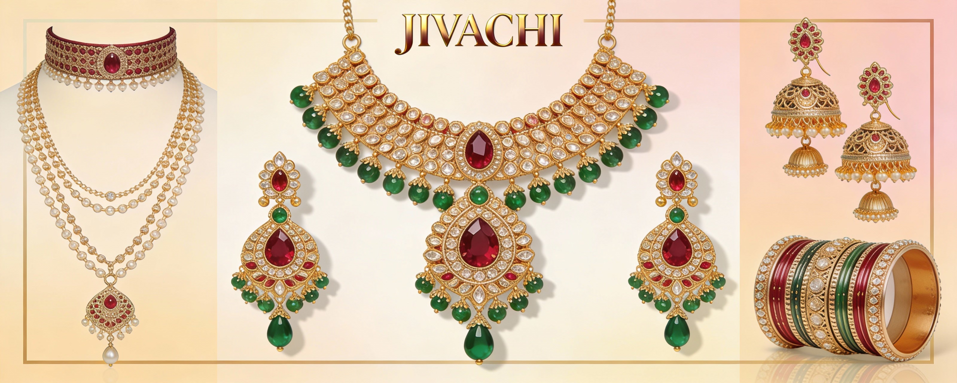 Rajwada Emerald Pearl Bridal Kada