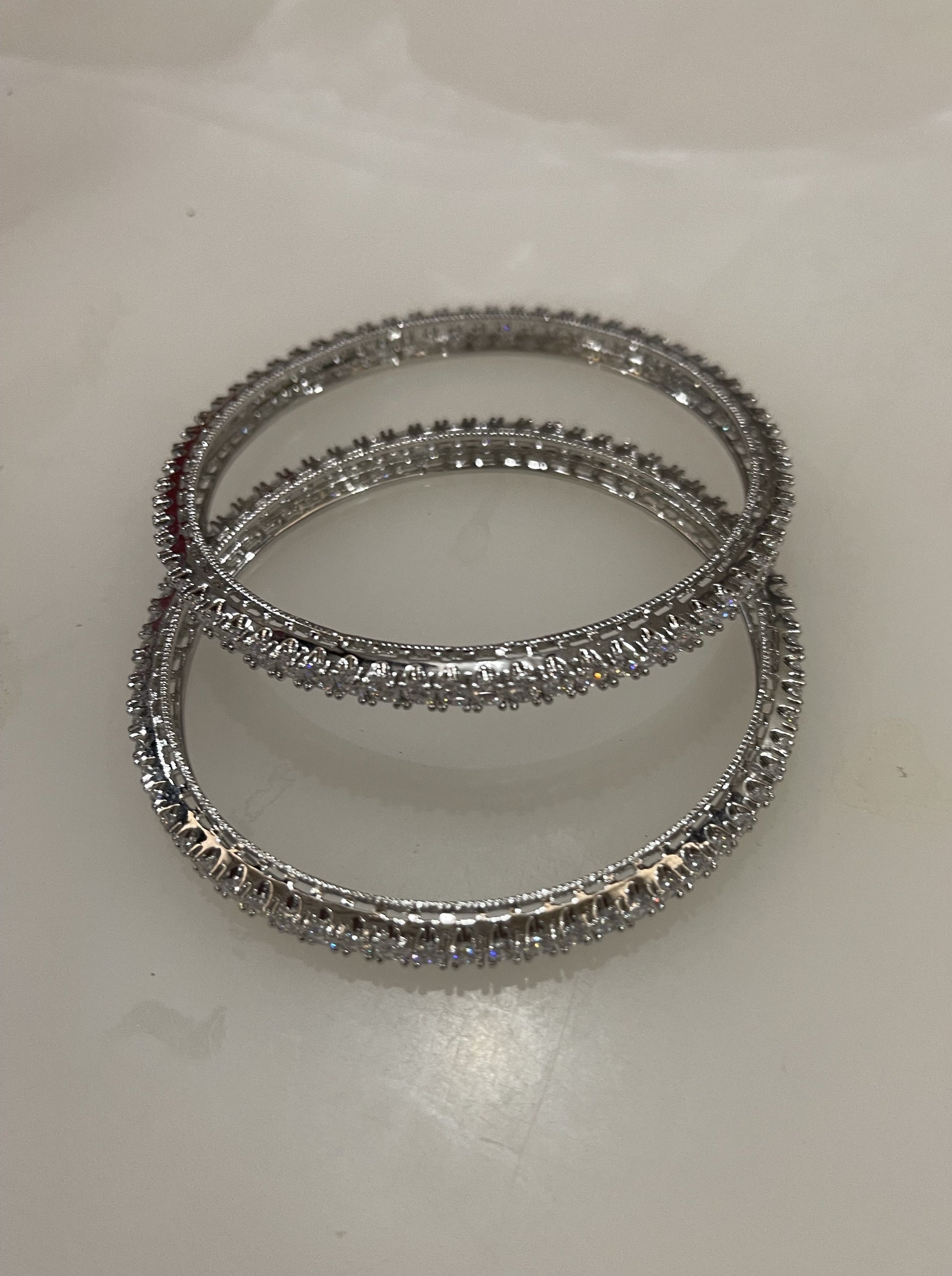 Each bracelet is intricately set with high-grade, diamond-cut cubic zirconia stones that deliver brilliant sparkle from every angle. Designed in a classic 2.4 size, this elegant pair sits comfortably on the wrist, making it perfect for daily wear, festive occasions, and evening events. Whether worn alone or stacked, these bracelets exude refined luxury and modern sophistication.